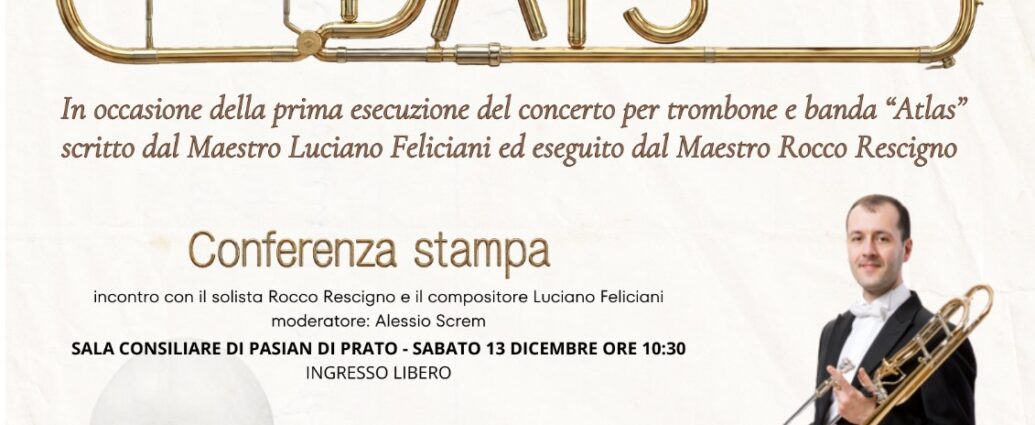 La Banda Musicale di Passons è lieta di presentare i “Trombone Days”, un’iniziativa culturale che unisce formazione musicale di alto livello e produzione artistica originale. L’evento nasce per celebrare il talento del M° Rocco Rescigno, trombonista di fama internazionale che ha mosso i primi passi proprio nella nostra Scuola di Musica , e culminerà con la prima esecuzione assoluta del brano “ATLAS”, scritto dal M° Luciano Feliciani.